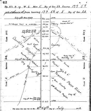 The following survey was taken in 1912 Survey(Tp 83 Rge 19 & 18 W 6). It is for the Peace River area including old Fort St. John. Courtesy of BC Lands.